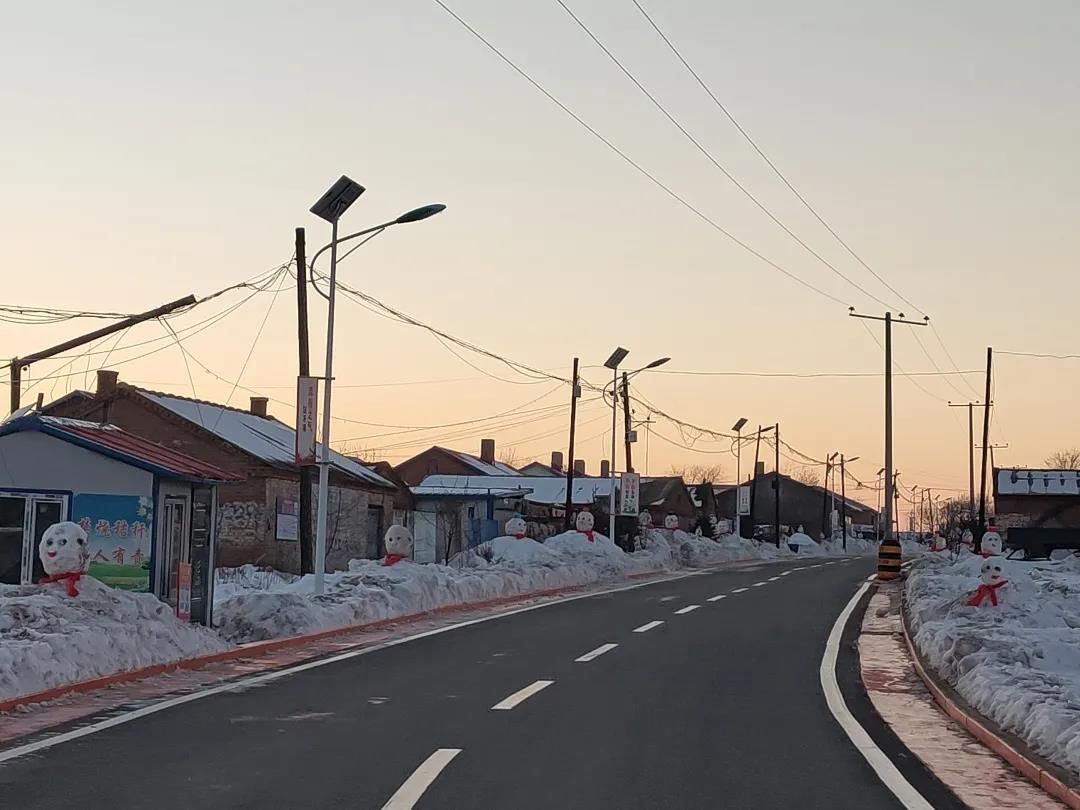在胜利乡合力村、吉城村,随处可见憨态可掬,造型各异的雪人,为寒冷的冬天增加了独特的情趣。这些可爱的雪人排列在道路两边,欢迎着人们的到来。